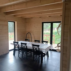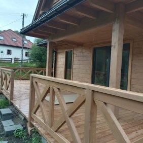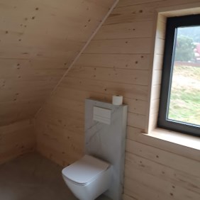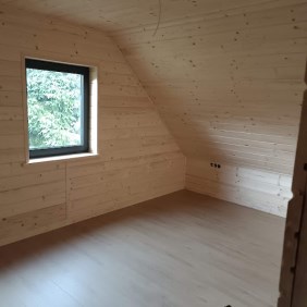 Tento dřevěný dům se staví metodou skeletových konstrukcí. V přízemí se nachází obývací pokoj s kuchyňským koutem, vstupem na terasu, Technická místnost a chodba. Dále potom schodiště a koupelna s WC. Hlavní vchodem se vstupuje do předsíně. V podkroví je chodba, tři pokoje a koupelna s WC.